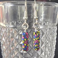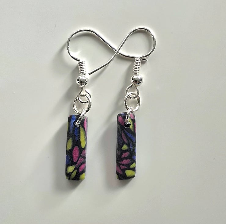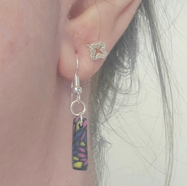 Polymer clay stained glass inspired mini drop earrings on silver plated earhooks