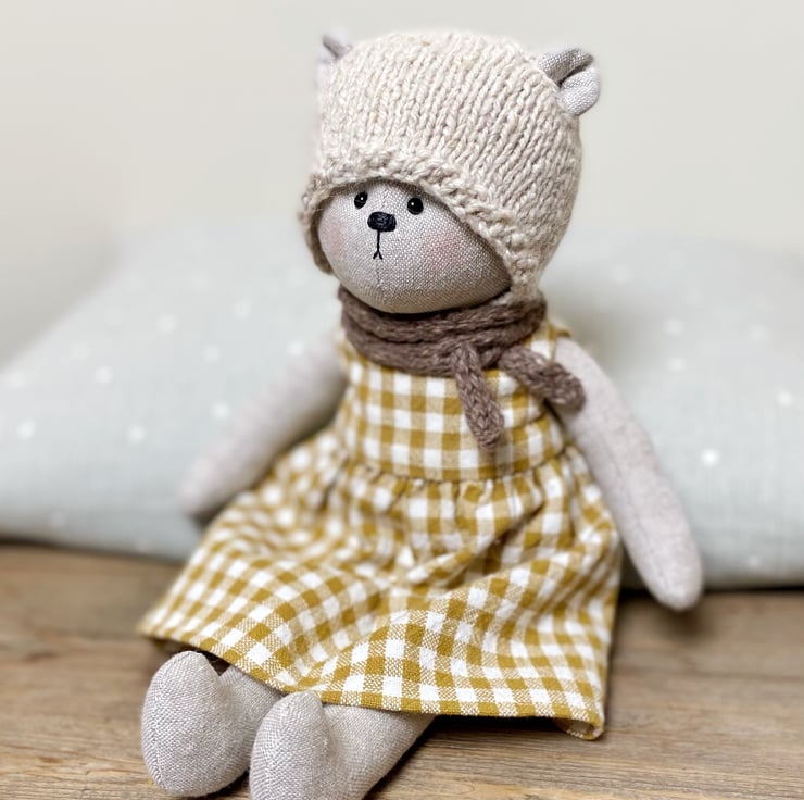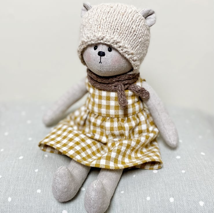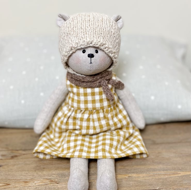 Meet Clementine, a handmade bear made from cotton linen fabric.