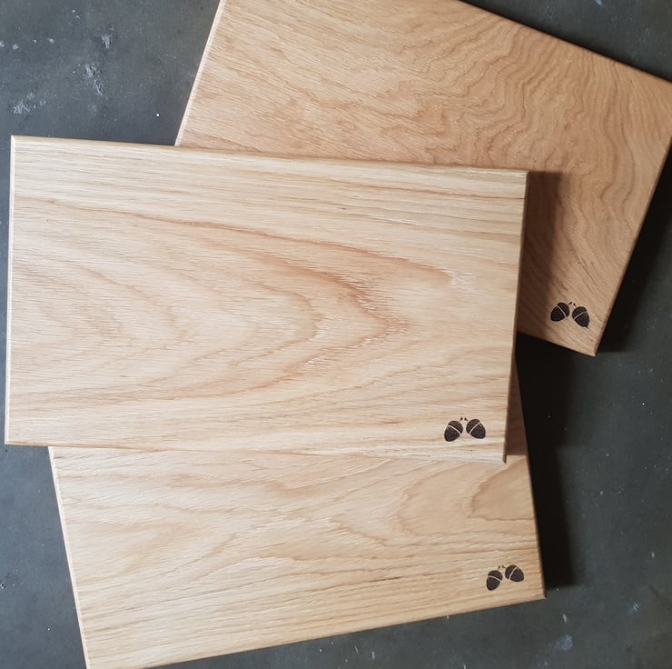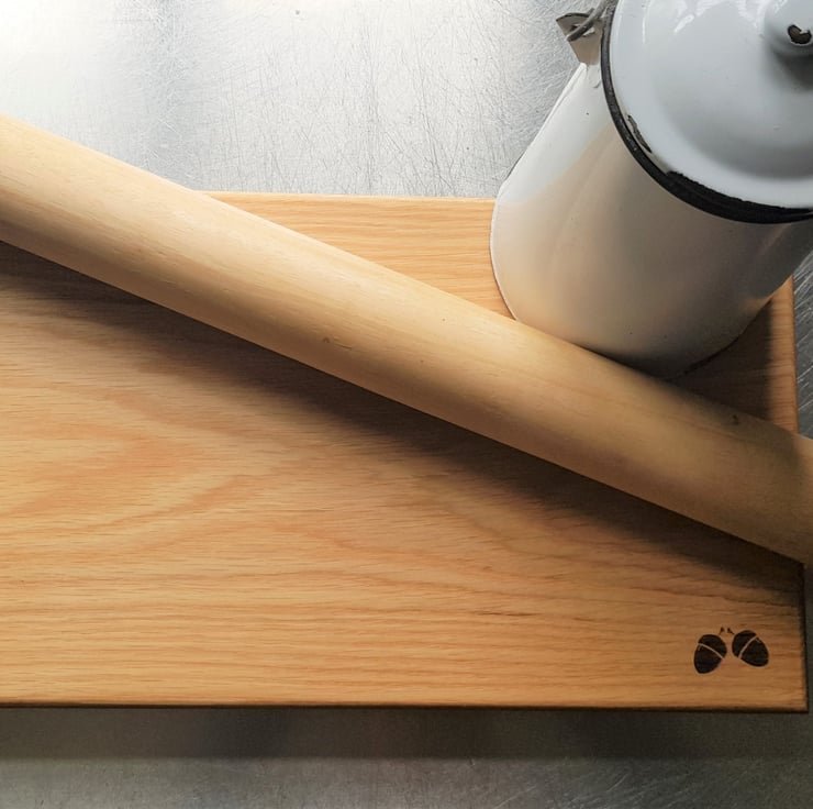 A classically simple oak chopping board made from prime grade solid oak. Finished with our food safe finishing wax and our acorn motif, this board will add a practical and timeless addition to any kitchen.