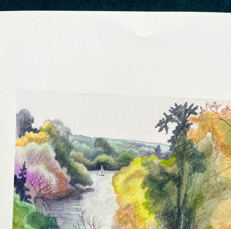 Using watercolour pencils, I drew "Above Terrace Gardens, Richmond" en plein air.
