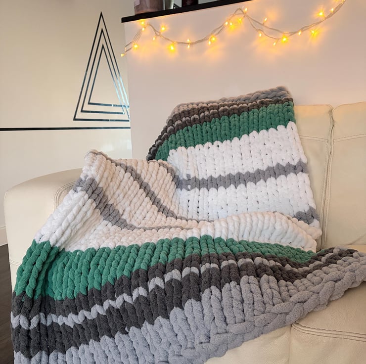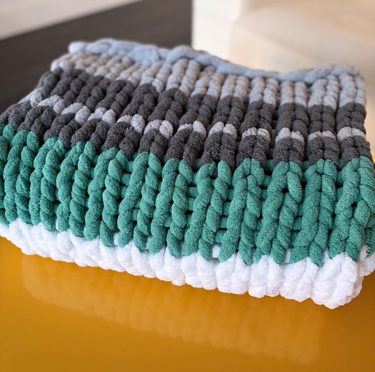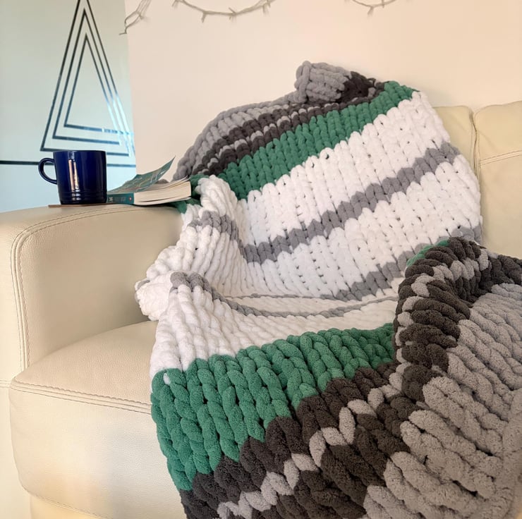 A super chunky, hand-knitted blanket designed to feel grounding, soft, and comforting.