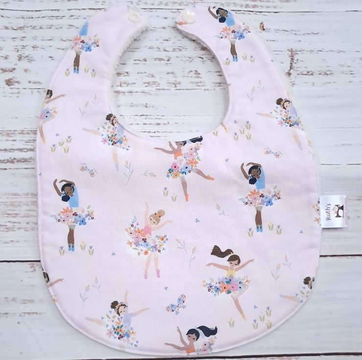 Ballerina pink bamboo baby bib size 3 to 12 months