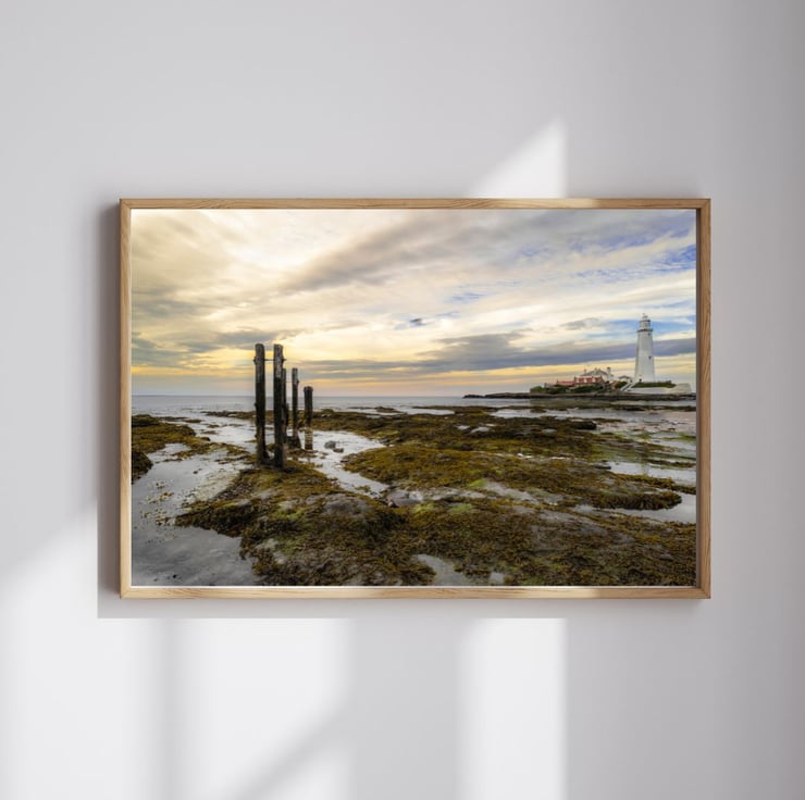 St Mary's is a sandstone island on the North East coast, near Whitley Bay on the North East coast. Famous for its iconic lighthouse and, in more recent times, a thriving seal colony, I captured this image late one summer evening at low tide.