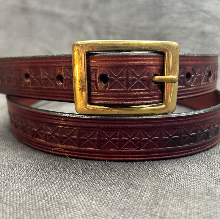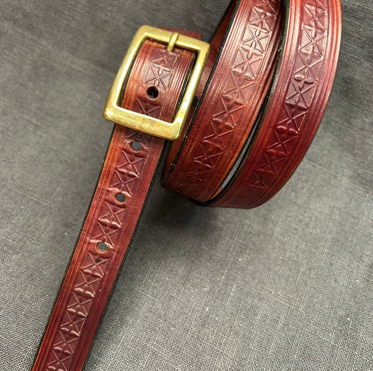 This beautiful mahogany coloured belt is made from veg tan leather, which is excellent for embossing.
