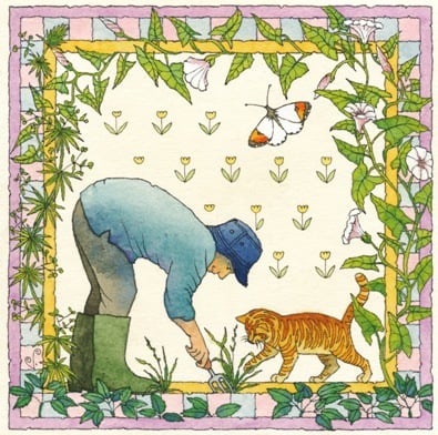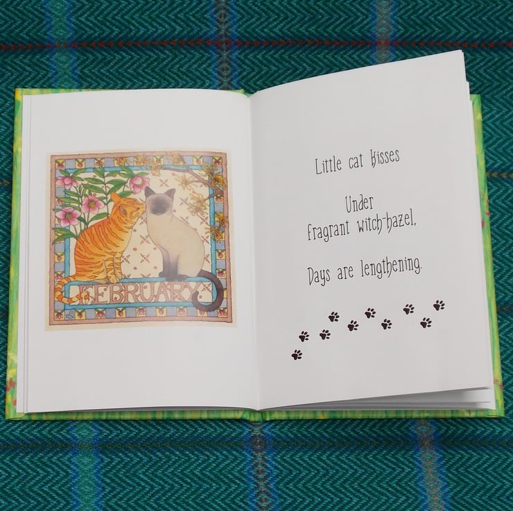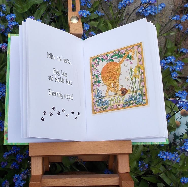 This little A6 hard back picture book is about a cat's life well lived through the rhythms of seasons on a garden path. Haiku poems accompany watercolour illustrations as our cat explores his garden and grows old.