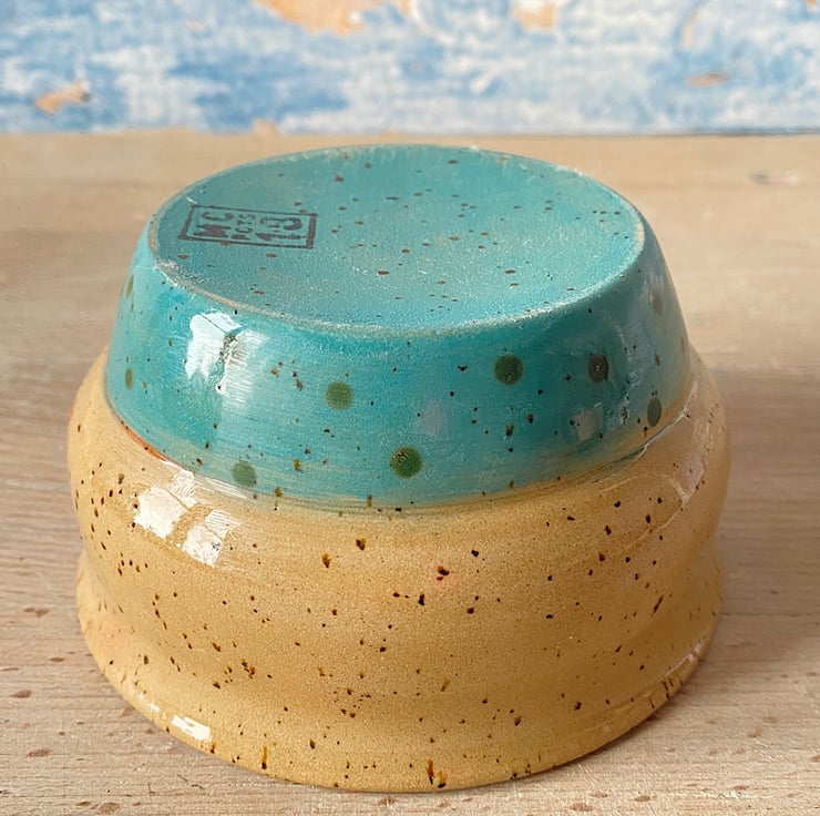Made with a heavily speckled stoneware clay. Thrown on my little pottery wheel. Made to catch all your used teabags.