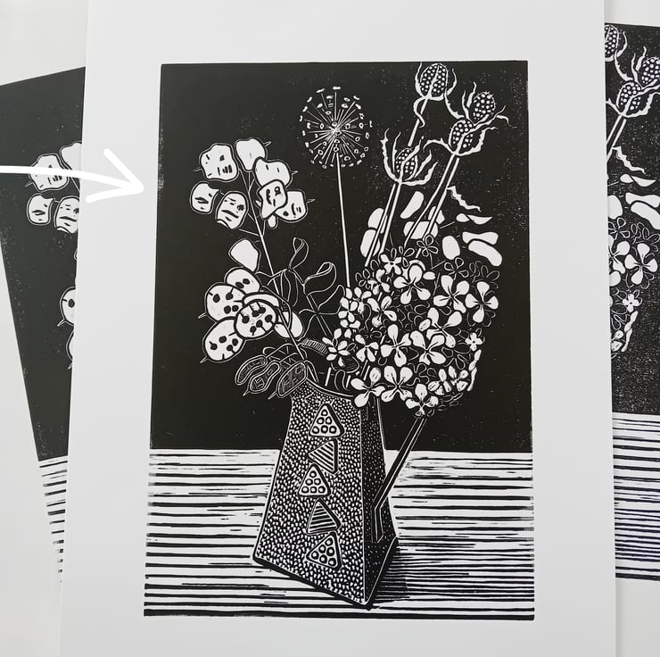 Perfectly Imperfect Linocut Print Hydrangea and Honesty Seedheads