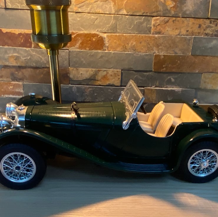 After collecting 1:18 Burago model cars for the best part of 40 years I have amassed approx 85 examples. Most were bought brand new from all over the UK at a price of £50-£85. Some were sourced used for about half the retail price. I have decided to get my collection out of storage and Up cycle them into unique/bespoke table lamps and sell all. Each One is different and a description of each car and its condition will be in each advert. However there are some basics I will do on every lamp .