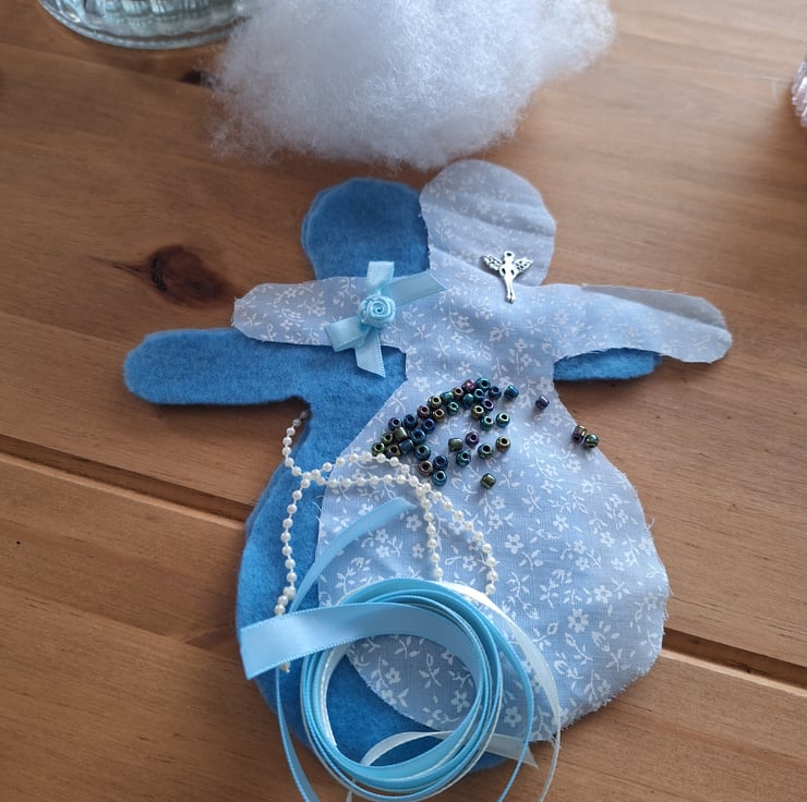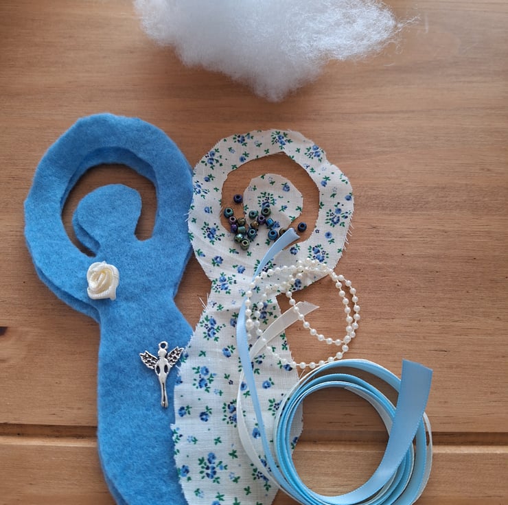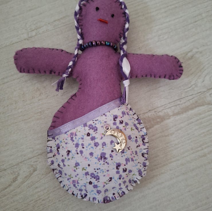 A craft kit including all materials to make one goddess doll. Includes pre cut goddess felt and polyester material, beads, ribbon, ribbon rosed, charm, stuffing and comprehensive instructions. Just add needle and cotton.