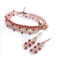 Metallic purple and rose gold dagger bead dangle earrings and necklace set