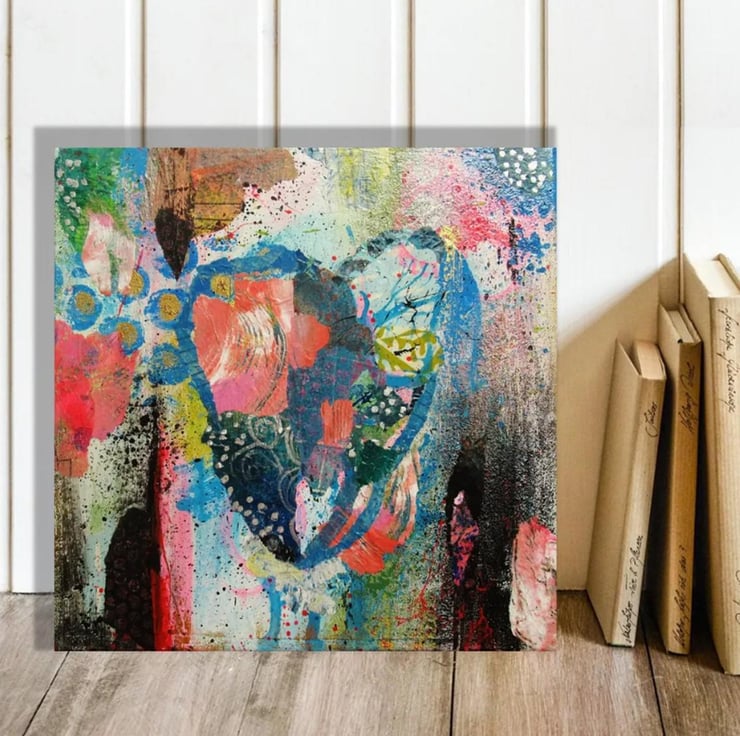 Abstract Heart Painting Square Dynamic Colourful Original Artwork 10x10" Canvas
