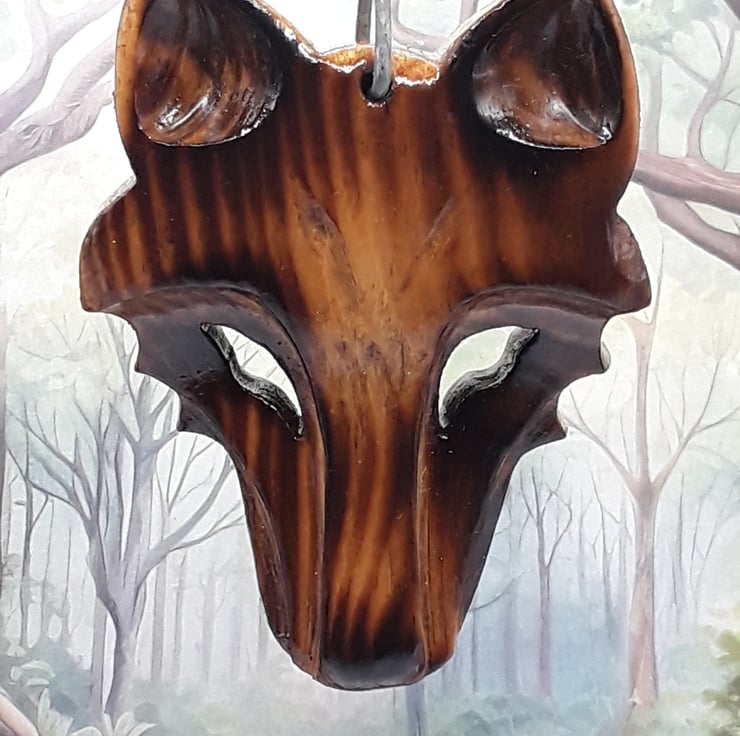 A stunning hand carved necklace pendant, carved from recycled wood a rich deep colour with a nice grain, I have slightly scorched the wood to add character, the piece features a suede cord and a decorative bead, I provide enough cord to tie to the length you require.