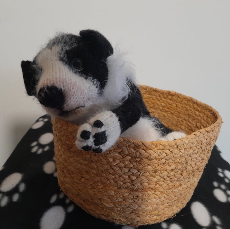 This unique pattern by talented Claire Garland is designed so his paws curl round just like a real new born pup. You'll not want to put him down.
