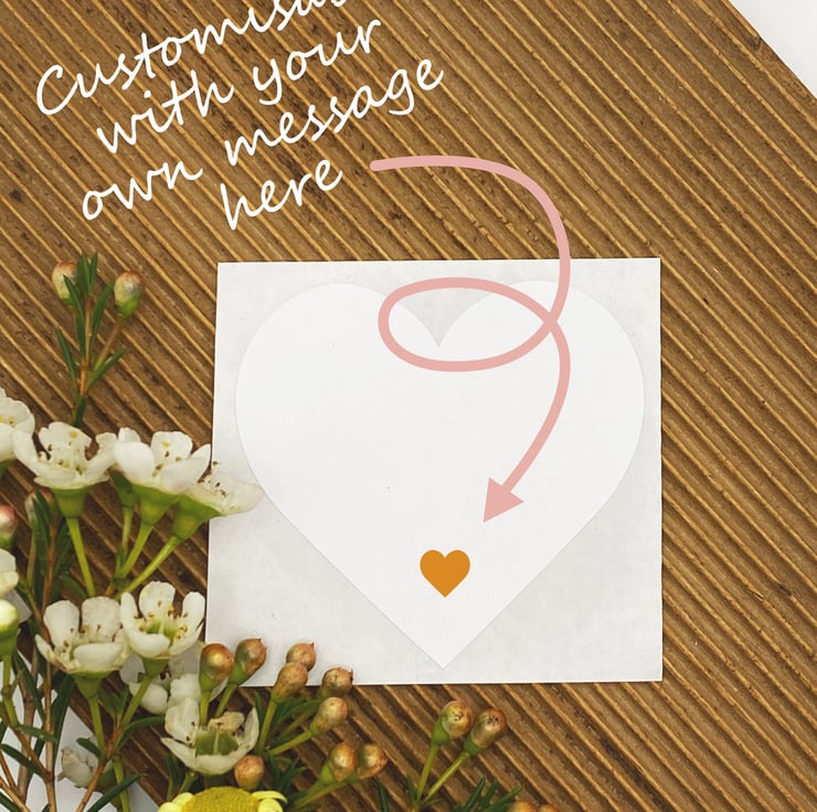 Comes with a paper sticker affixed to the back of your decoration with your chosen message.