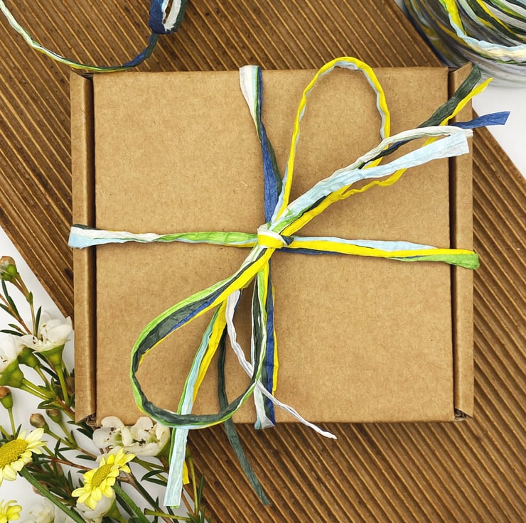 It's a perfect postable letterbox gift and comes beautifully packaged in a simple kraft gift box. Supplied with multicoloured strand raffia for you to use for that finishing touch.