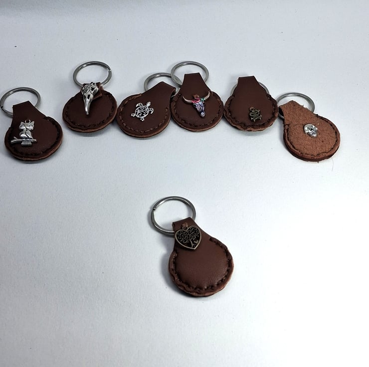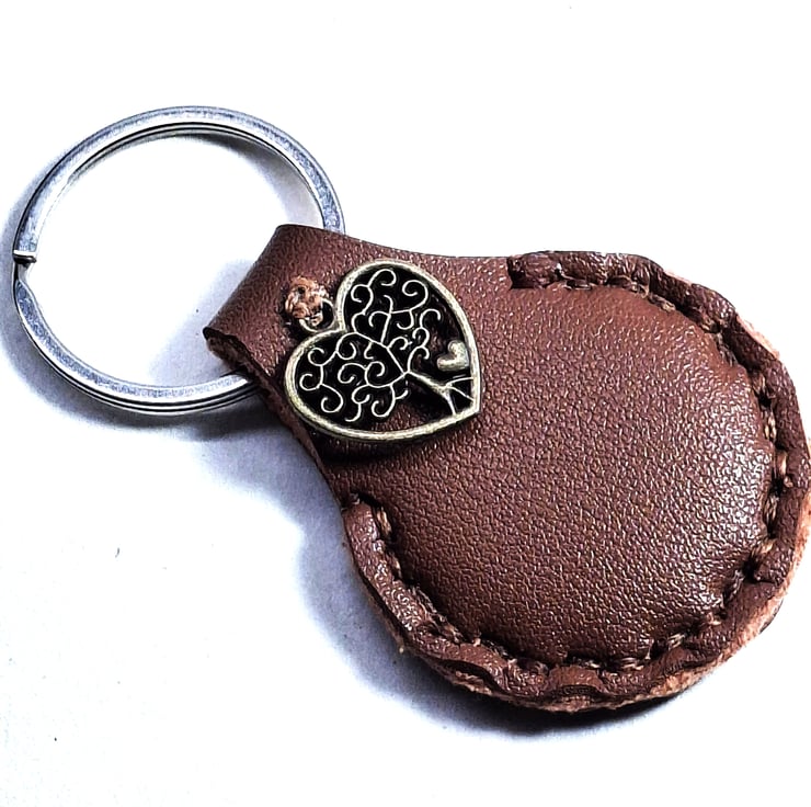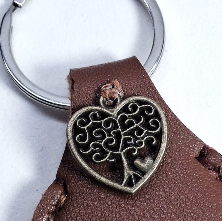 Brown Leather Hand Stiched Keyring. a metal Tree of Life Charm . FREE Postage