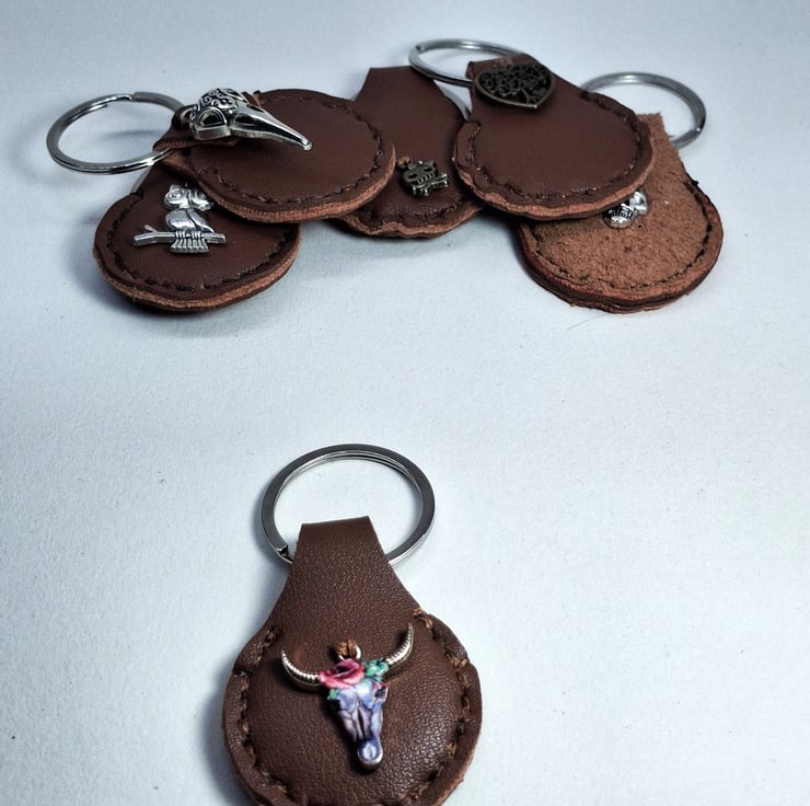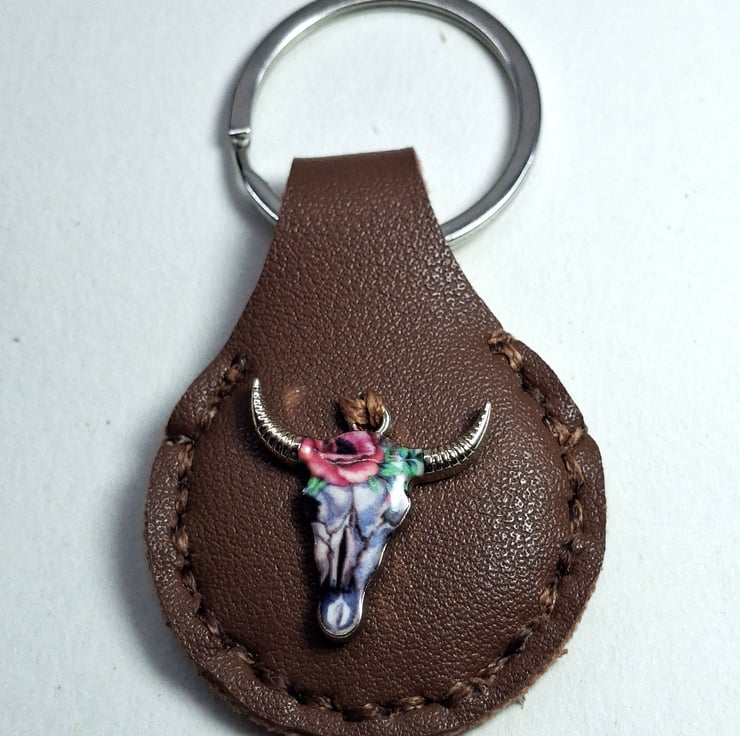 Reversed Leather, A coloufull Bulls Head stitched onto the front.