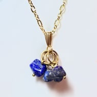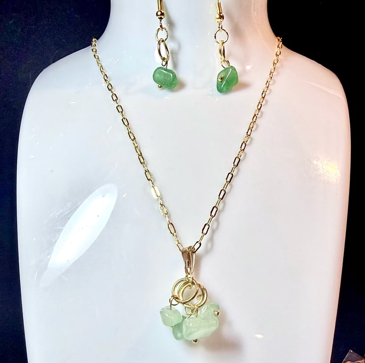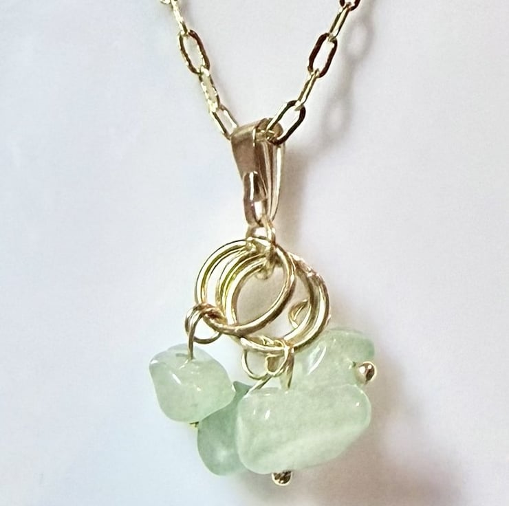 Cluster/bunch of natural gems, irregular green crystal stone nuggets. With a high-quality, non-fading, 14 Karat gold-plated chain.