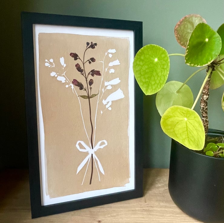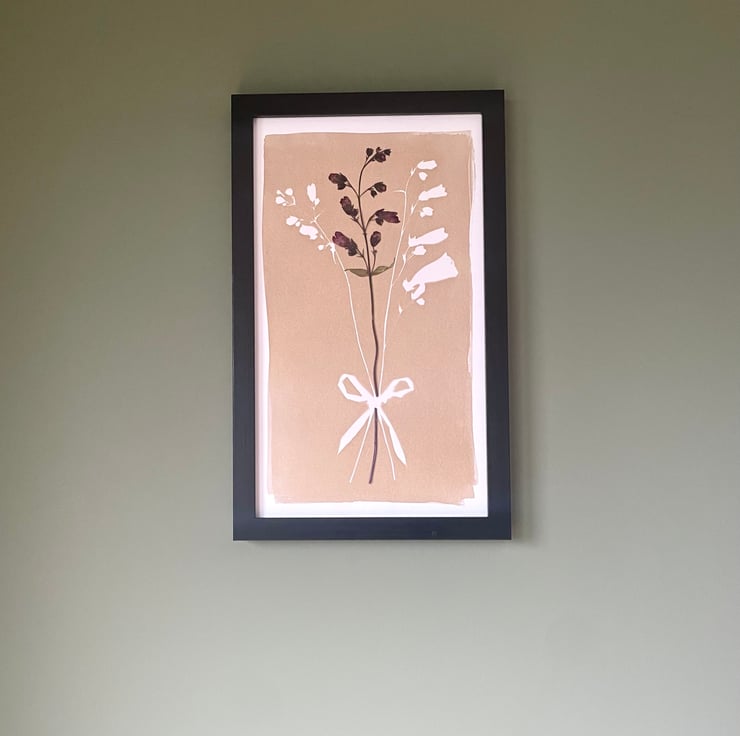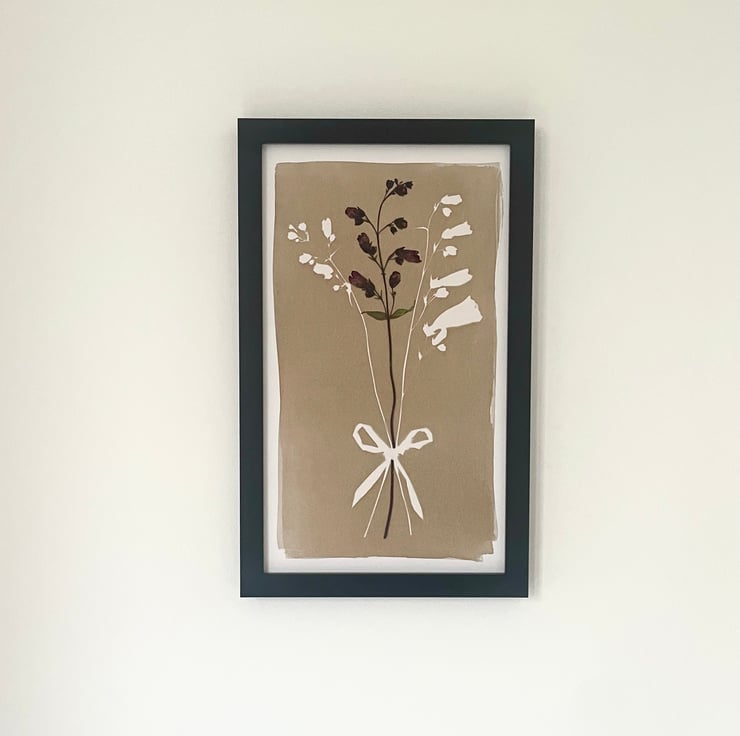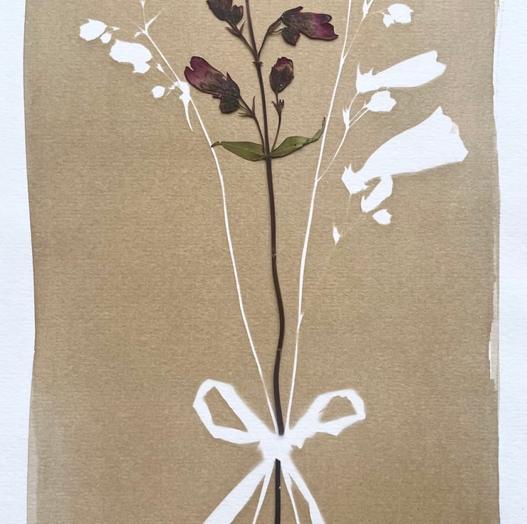 An original cyanotype print dyed in subtle neutral tones. This print celebrates the beauty and grandeur of the Penstemon flower and features a pressed Penstemon stem. This is the perfect print to adorn the walls of a flower lover’s or a gardener’s home.