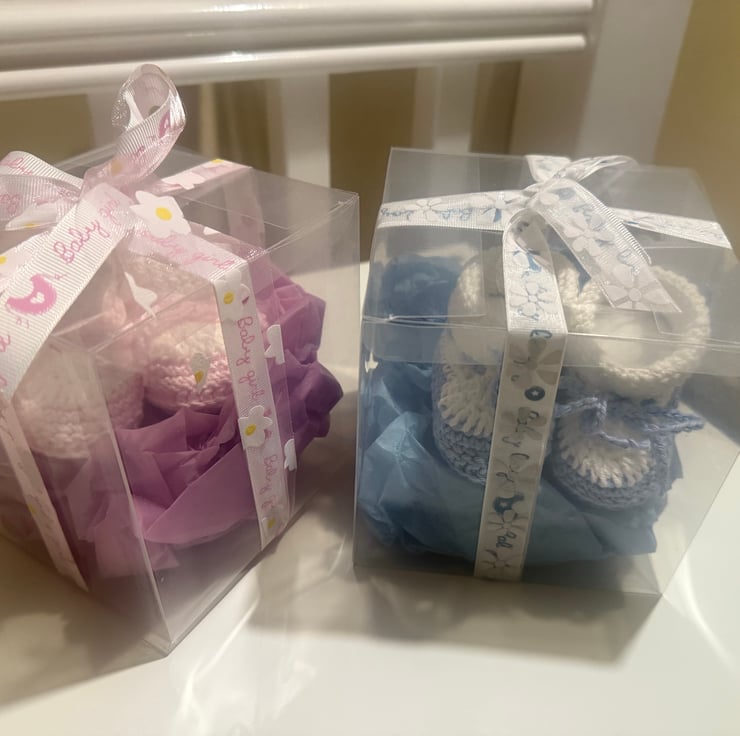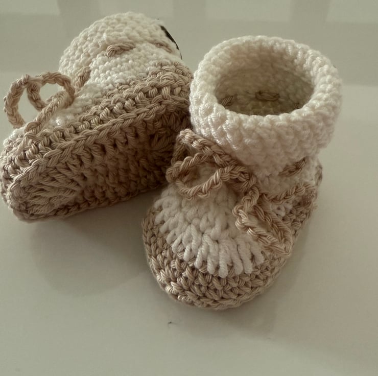 Beautifully crocheted baby booties, two toned or single toned can be made to order, in smoke and pet free home.