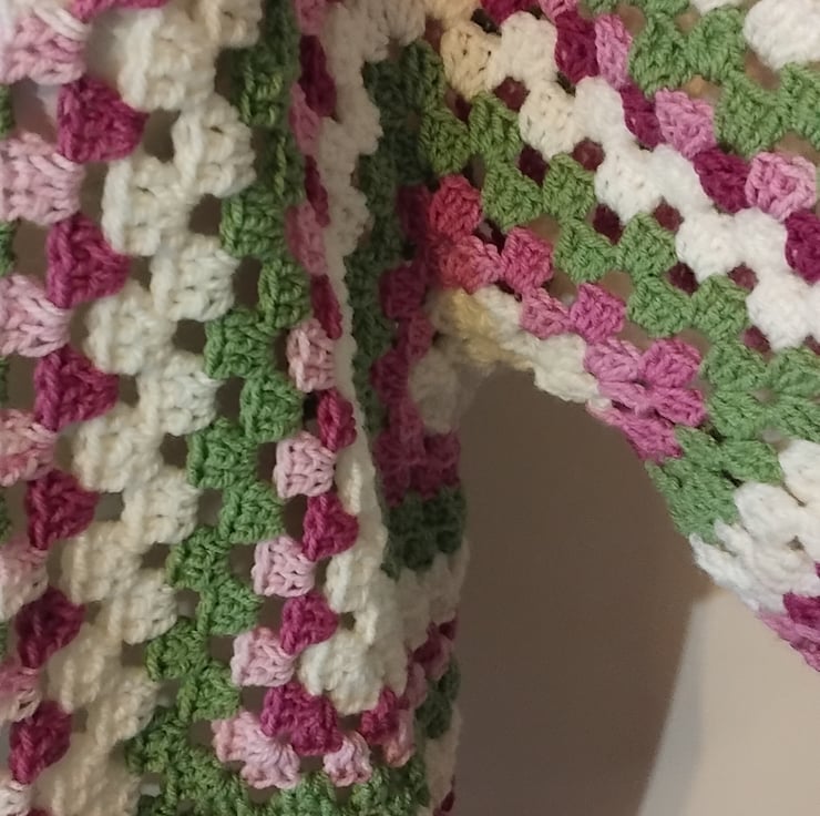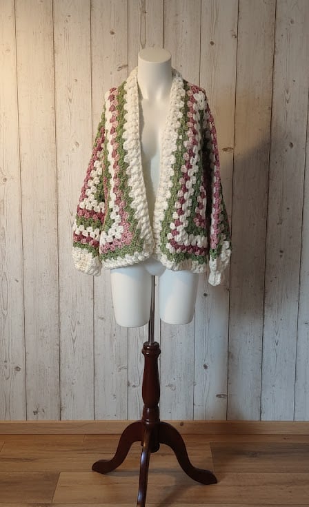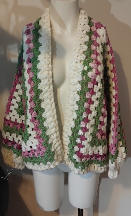 Handmade Crochet Granny Square Cardigan Sage & Sorbet, Boho Hexagon Cardigan