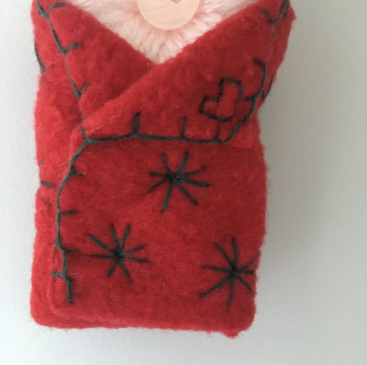 These Christmas decorations are approximately 8 - 9cm in height and 5cm wide, but vary slightly as they are handmade.