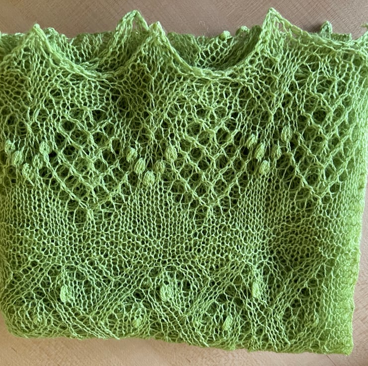 The shawl is very airy and light ( weight is 57gr) , It drapes beautifully.