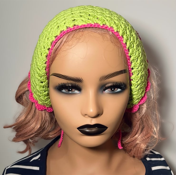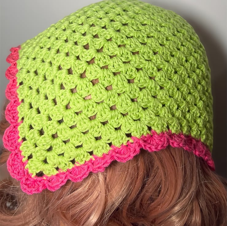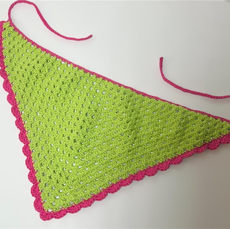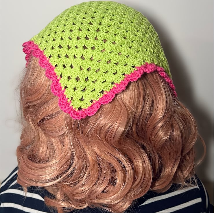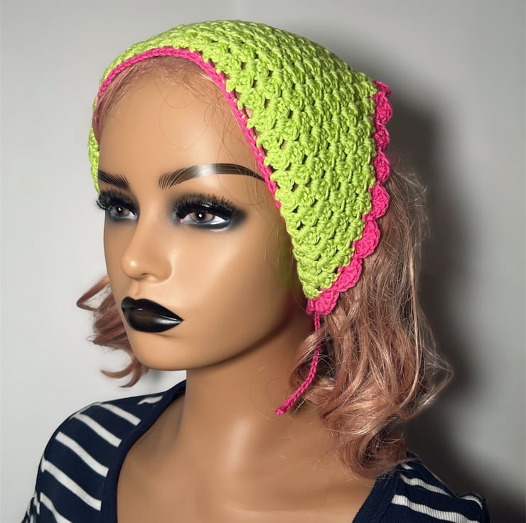 This vibrant, handmade crochet bandana is the perfect accessory to add a pop of color to any outfit