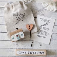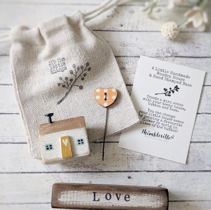 A sweet teeny wooden house and button scene that you can choose to personalise with your own decoration!