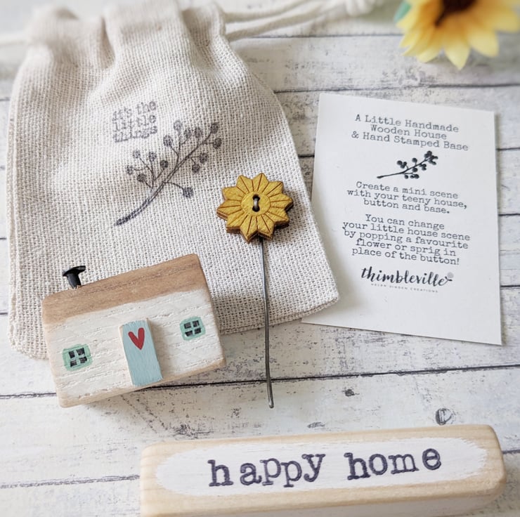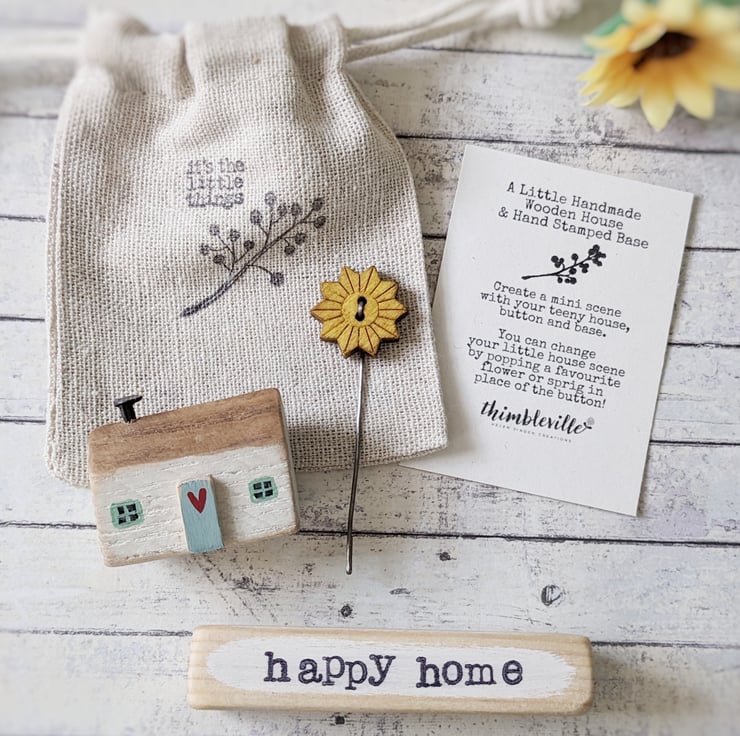 A sweet teeny wooden house and button scene that you can choose to personalise with your own decoration!