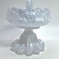 This lovely piece stands 7cm tall, 5.5cm candle area, 6.5cm across the base.