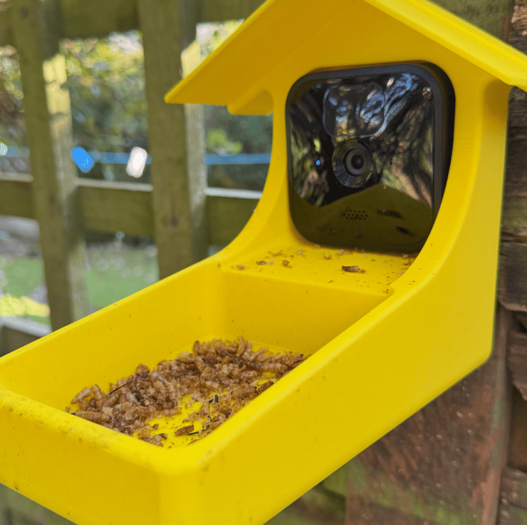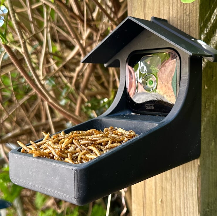 Bird feeder that is compatible with a blink mini great for feeding birds and doing remote bird spotting without disturbance . the camera is not included only the bird feeder . The bird feeder is available in white but if necessary other colours are available upon request