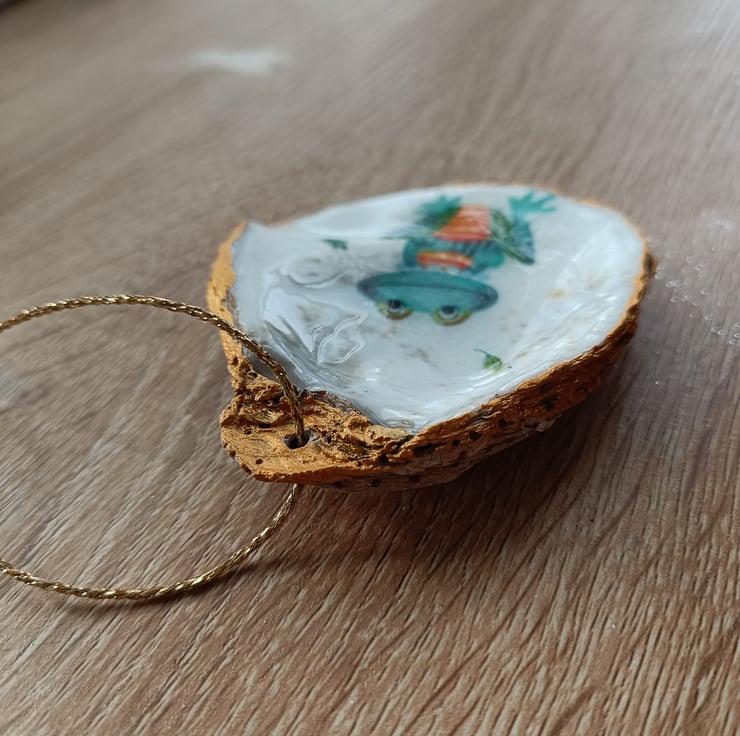 Happy froggy hand-finished oyster shell