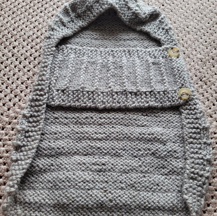 A more subtle coat, for those that don't want to show off. Hand knitted in chunky yarn gives it texture