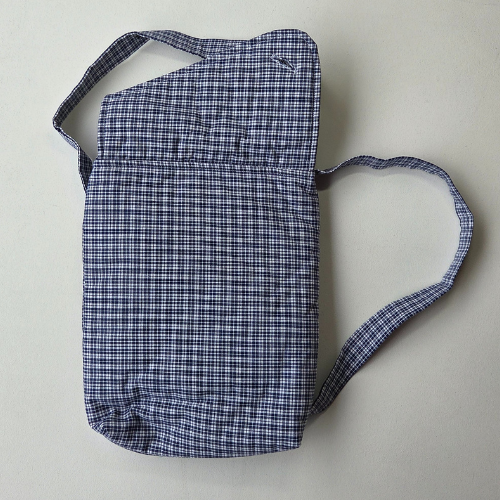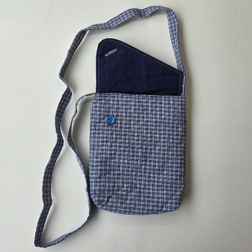 Blue check crossbody bag is made from cotton fabric with fleece lining to give it a soft feel.
