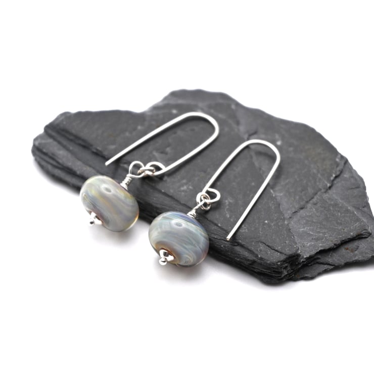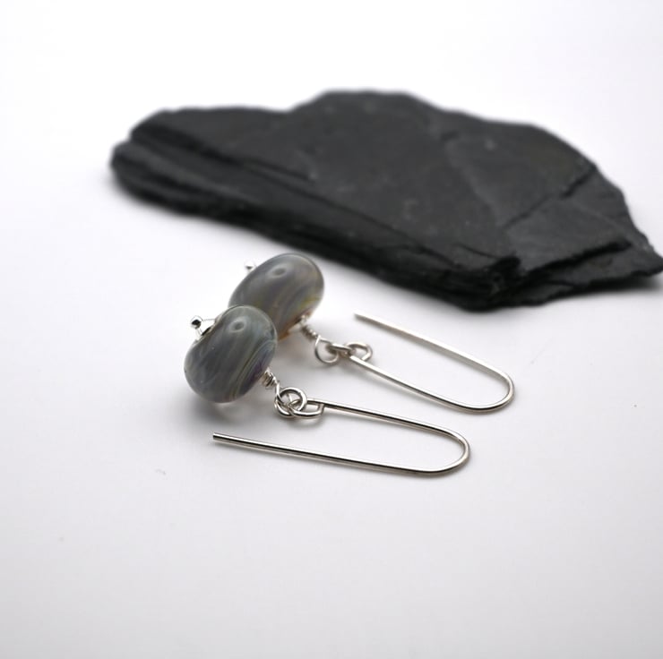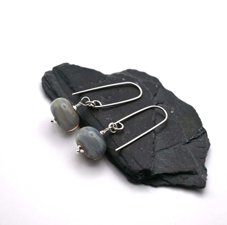 A pair of handmade lampwork glass earrings which feature handmade sterling silver ear wires.