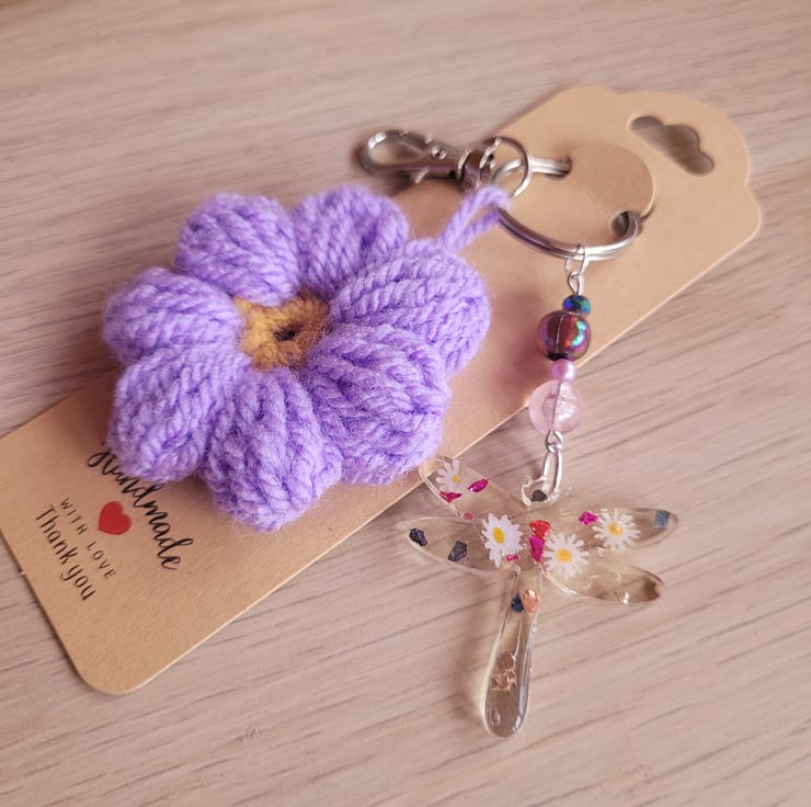Resin and Crochet Dragonfly Bag Charm