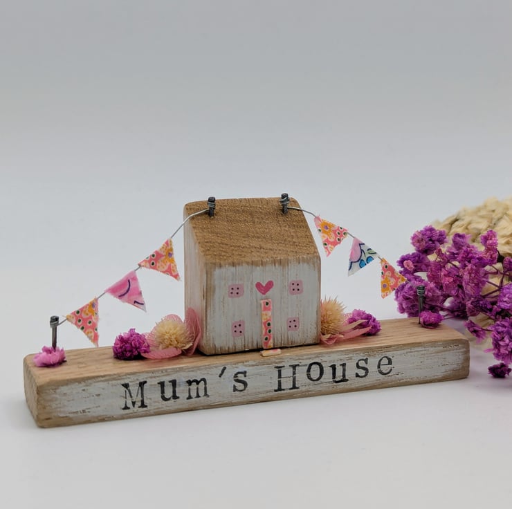 Mum's House is a tiny handmade oak cottage decoration.