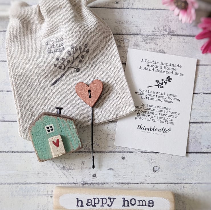A sweet teeny wooden house and button scene that you can choose to personalise with your own decoration!