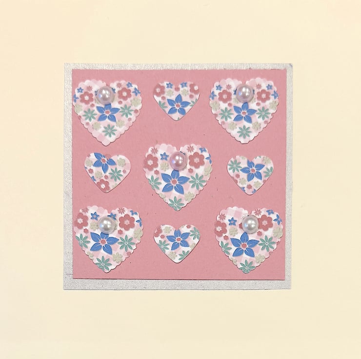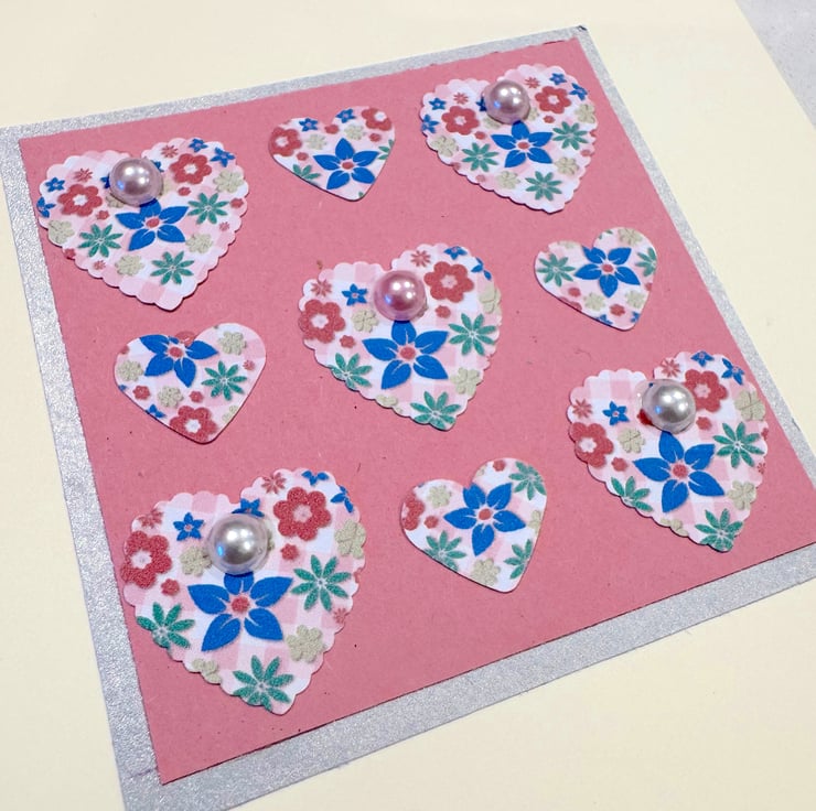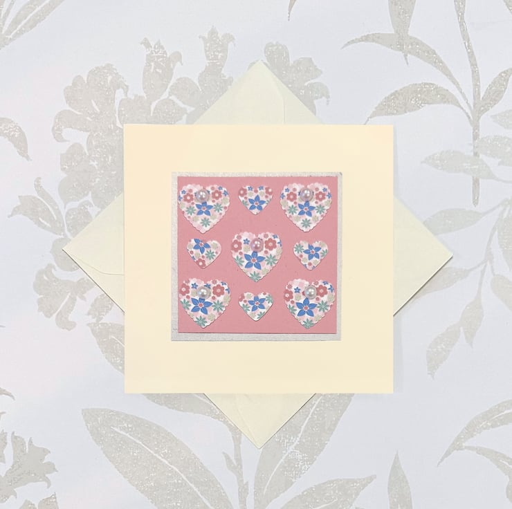 Gorgeous Valentine's Day card on a yellowy cream cardstock with a pink floral heart theme.