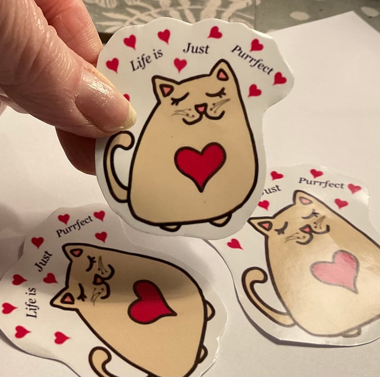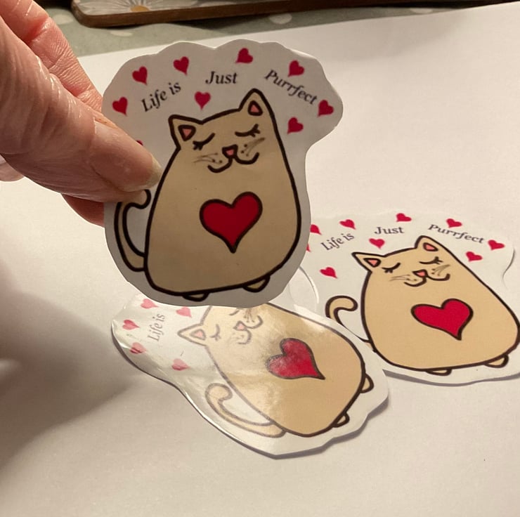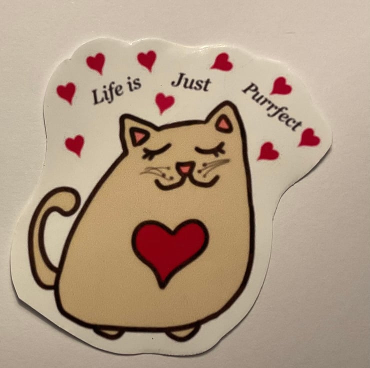 This sticker is a cute little cat which has the words life is just purrfect and some hearts, simply cute this is for a pack of six.