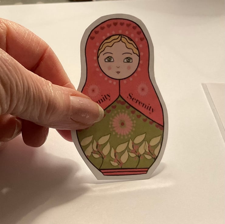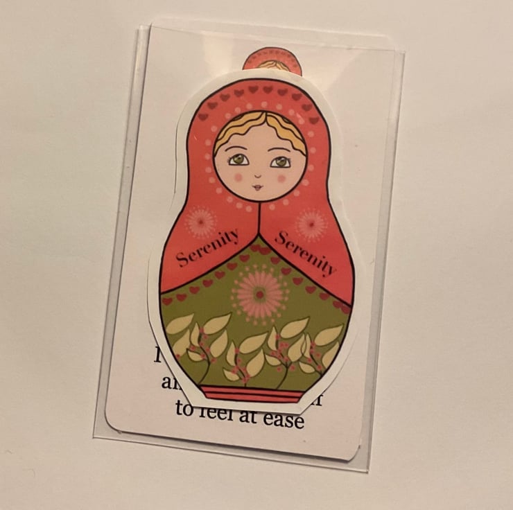 This is part of my Russian doll stickers, this one is serenity. As with all my other Russian doll stickers it comes with a card to remind you of its message. This reminds you to find calm in your day.