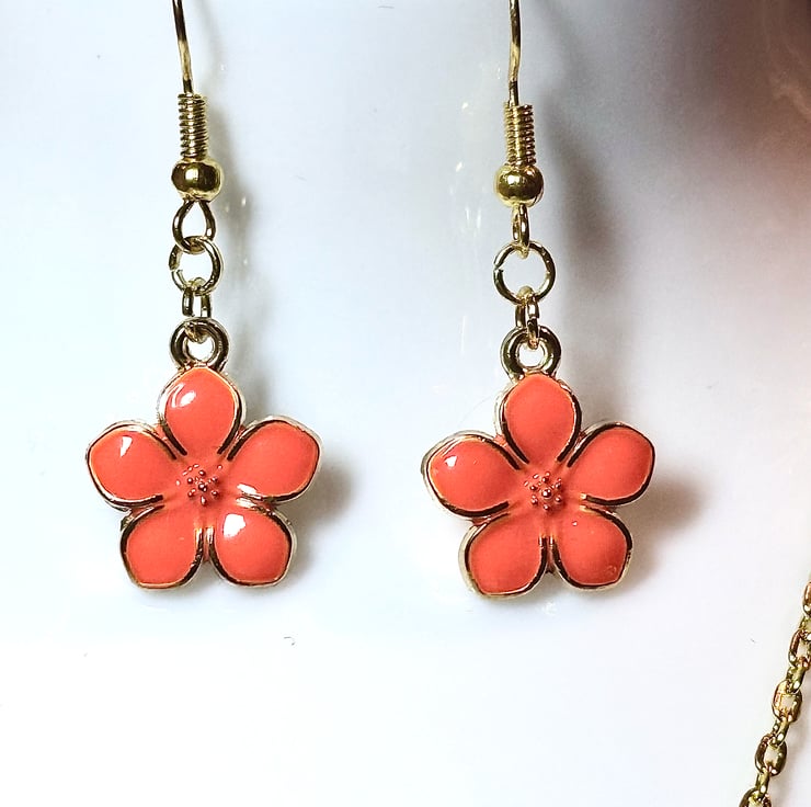 Dangle orange dangle earrings with 14K gold details. The earring hooks are 14K gold-plated and non-fading.