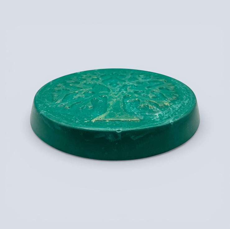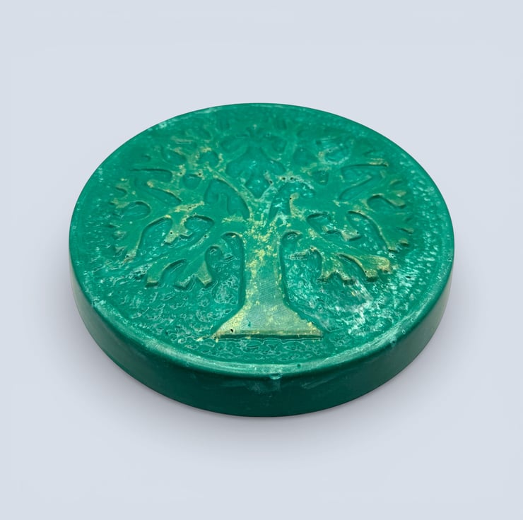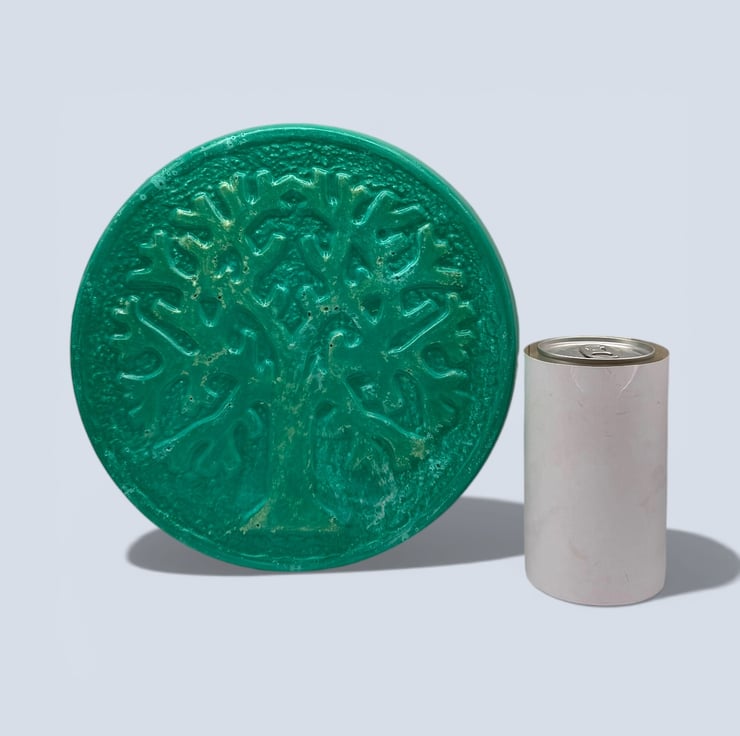 The plaque is handmade from a water-based mineral material with a smooth, stone-like feel and a reassuring weight. The raised tree design stands proud from the surface, and small air bubbles, texture variations and gentle colour shifts are part of the handmade process, making each piece unique.