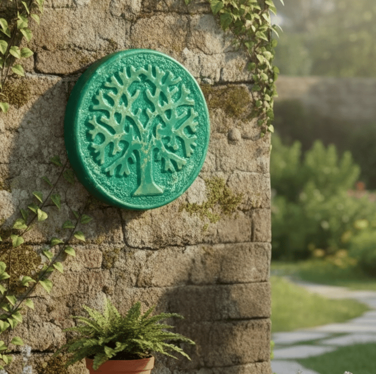 Inspired by the enduring symbolism of the Tree of Life, this handmade wall plaque represents growth, strength and connection. The layered green tones and soft gold shimmer echo leaves catching the light, giving the piece a natural, grounding presence. Designed to work both indoors and outdoors, it brings a calm, organic focal point to garden walls, patios or interior spaces where you want a quiet moment of nature and meaning.