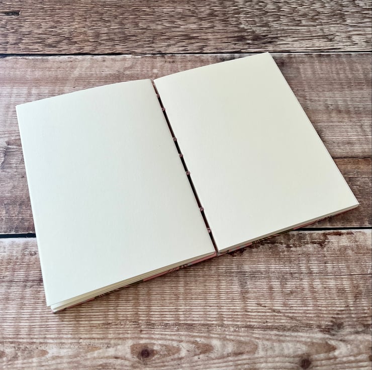 It has 50 pages (100 sides) of responsibly sourced 120gsm ivory paper, suitable for all writing and drawing mediums. The paper is folded into 5 sections. These are then stitched together to create a beautiful exposed spine binding which allows the book to rest completely flat when open.