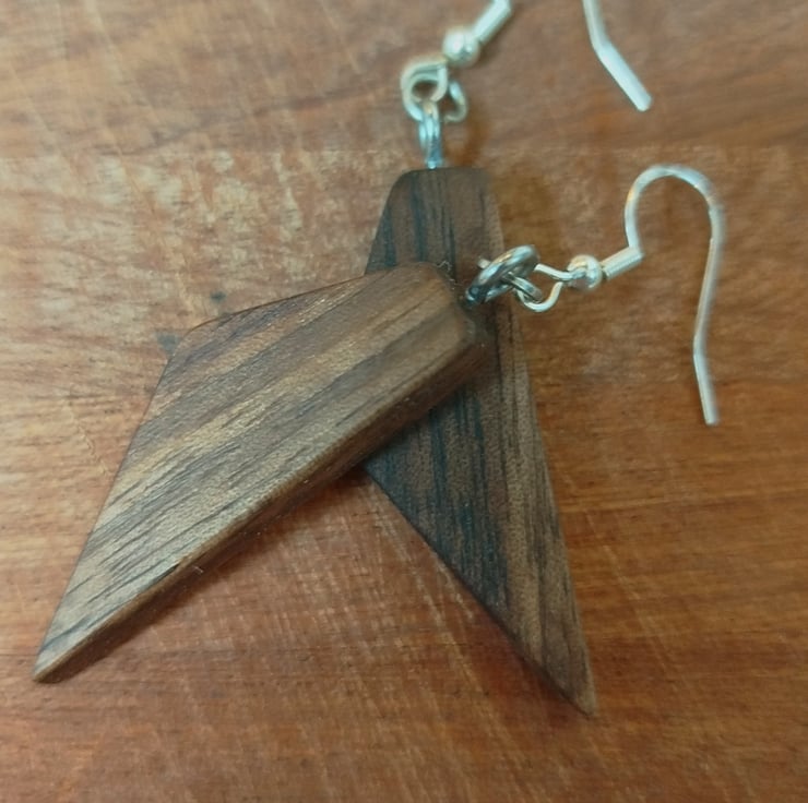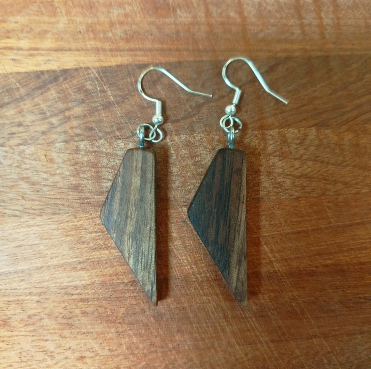Handmade Wooden Earrings - Geometric 'Triangles' in Walnut