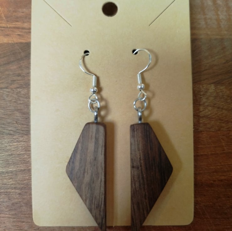 Lightweight Walnut hardwood earrings with 925 silver-plated hooks and stainless steel jump rings. Finished with natural mineral oil and soy wax.