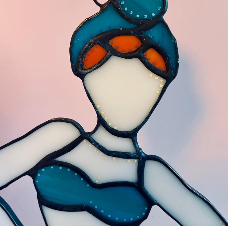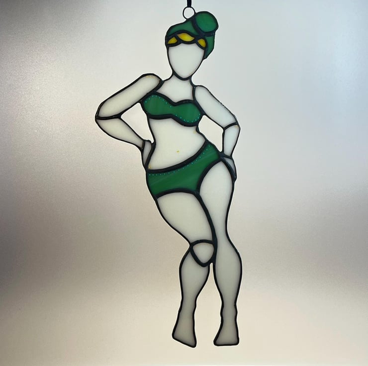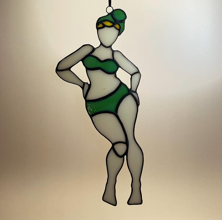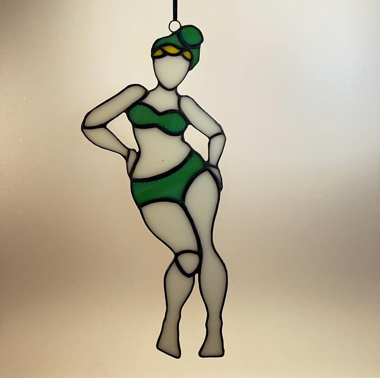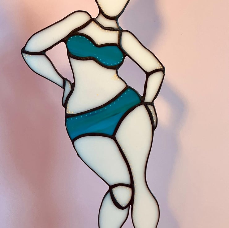 Unique and fun stained glass suncatcher. Catches the light beautifully! Celebrate those curves, ladies!
