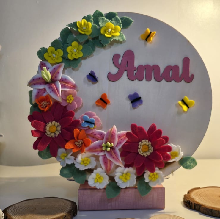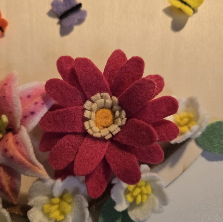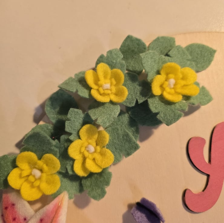 Each wall hanging is carefully handmade, with layered felt flowers in cheerful colours to create texture, depth and charm. Designed to spark imagination while bringing warmth and personality to a child’s space, this piece also makes a thoughtful keepsake gift.